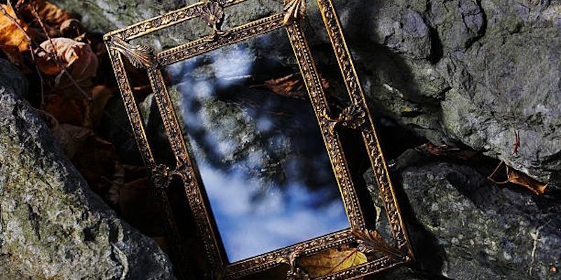 В зеркалах.